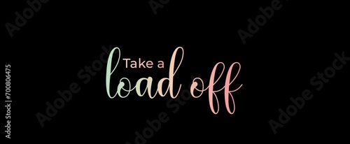Take a load off handwritten slogan on dark background. Brush calligraphy banner. Illustration quote for banner, card or t-shirt print design. Message inspiration. Aesthetic design.
