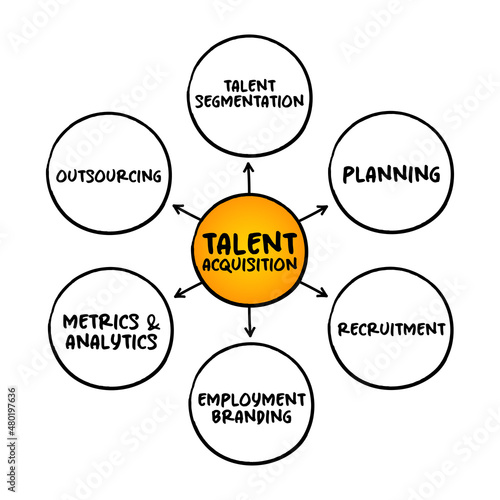 Talent acquisition - process employers use for recruiting, tracking and interviewing job candidates, mind map concept for presentations and reports