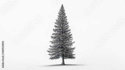 Tall Evergreen Tree Drawing on White Background