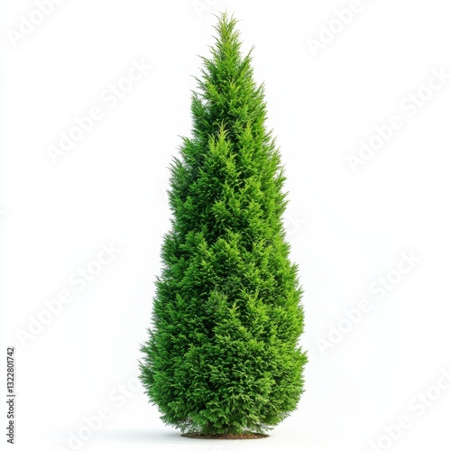Tall Evergreen Tree with Dense Foliage on White Background