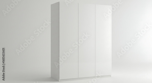 Tall rectangular white two-door wardrobe with a simple modern and minimalist aesthetic.