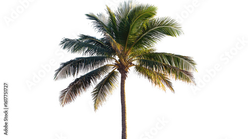 Tall tropical coconut trees above the transparent background, perfect for a summer travel or beach vacation design. PNG