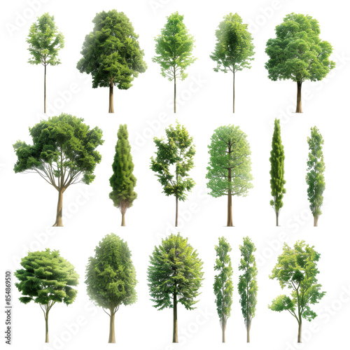 Tall Watercolor Trees Collection, Perfect for Environmental Publications and Forestry Projects, Isolated on Transparent Background