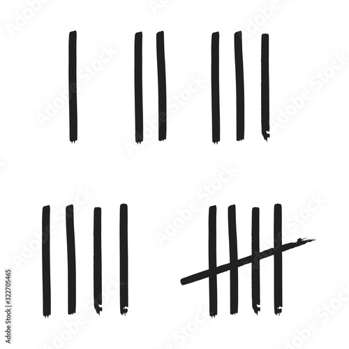 Tally marks on white board hand drawn dirty art style vector illustration set.