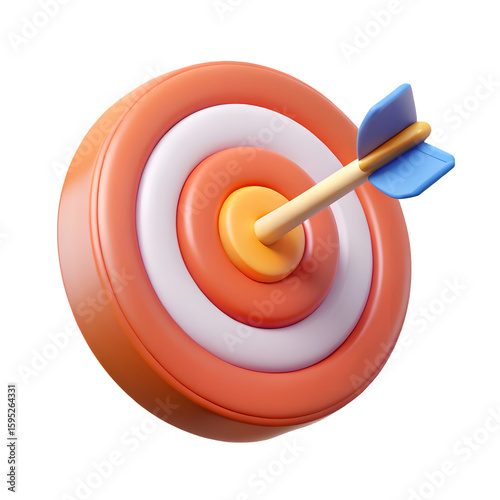 Target arrow success icon. Dart arrow on target dartboard. 3d isolated on white background. Cartoon plastic style