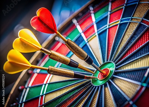 Target Audience Concept in Macro Photography: Close-Up of a Dartboard with Colorful Darts Highlighting Market Segmentation and Strategic Focus for Marketing and Business Growth