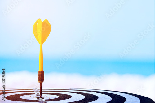 target dart with arrow over summer background ,image for target marketing holiday vacation concept .