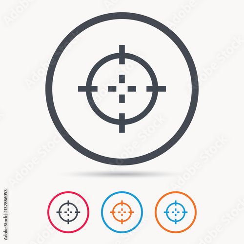 Target icon. Crosshair aim symbol. Colored circle buttons with flat web icon. Vector