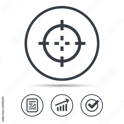 Target icon. Crosshair aim symbol. Report document, Graph chart and Check signs. Circle web buttons. Vector