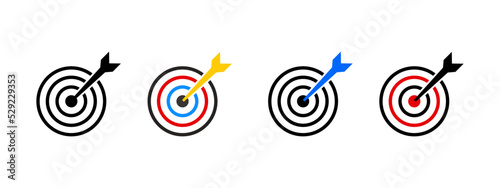 Target icons set. Goal symbol collection. Hitting the bullseye icon in flat style