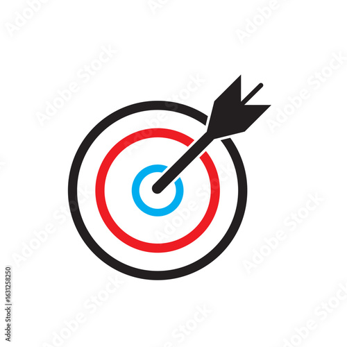 Target icon.Target Line Icon Design, Editable Stroke, Pixel Perfect, Stock Illustration. Goal symbol collection. Simple target with arrow. Darts icon. Hitting the bullseye icon line and flat style.