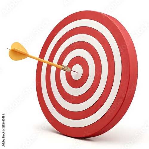 target with arrow, A bright red dartboard with white concentric rings. A light orange dart is embedded in the bullseye, precisely centered in the image. The dartboard is presented in a three-dimension