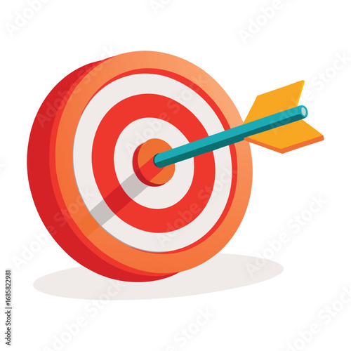 Target with Arrow Hit in the Center Isometric View Keywords: target, arrow, bullseye, dartboard, game, sport, accuracy