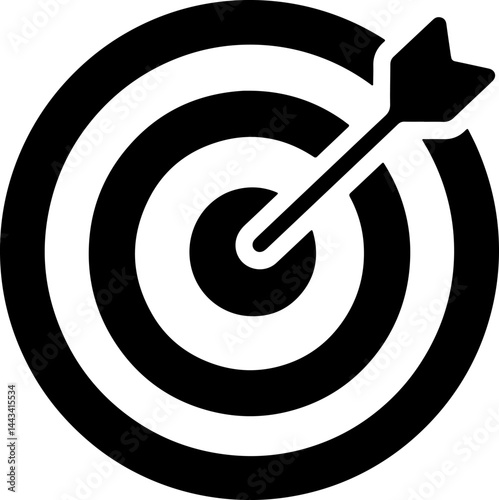 Target with Arrow in the Center – Black and White Hit Symbol Illustration