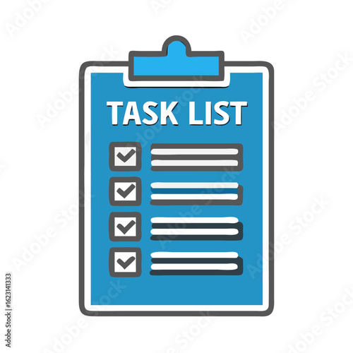 Task list clipboard illustration in blue and gray colors for organization and productivity concepts