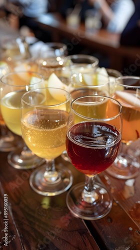 Tasting Flight Of Ciders In Glassware