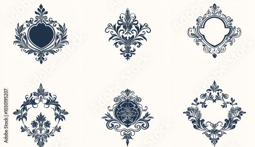 Tattoo black and white calligraphic heraldic shield swirl with a vintage baroque Victorian border flower pattern frame