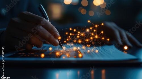 Tax Consultant Reviewing Papers with Digital Conceptual Elements