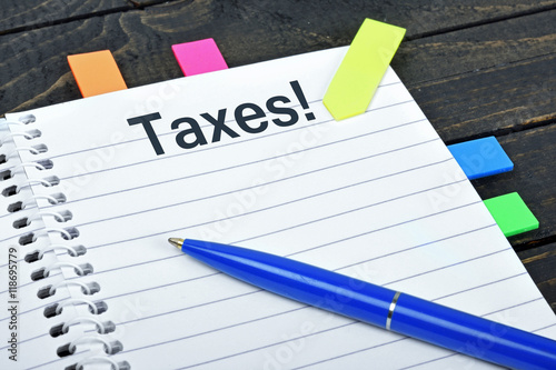 Taxes word on notepad