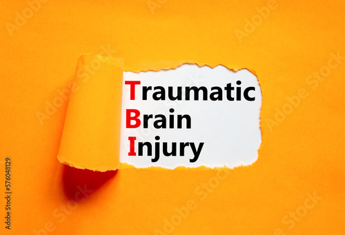 TBI traumatic brain injury symbol. Concept words TBI traumatic brain injury on white paper on a beautiful orange background. Medical and TBI traumatic brain injury concept. Copy space