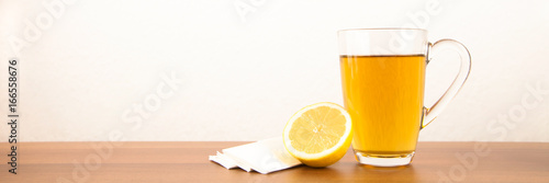 Tea with lemon and handkerchiefs during a disease