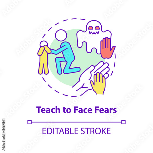 Teach to face fears concept icon. Support kid abstract idea thin line illustration. Help child to overcome phobias. Parenting. Vector isolated outline color drawing. Editable stroke