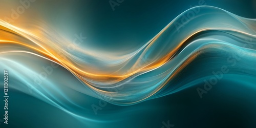 teal and gold blurred abstract waves design, background texture, Generative AI