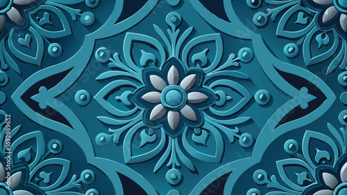 Teal and White Embossed Floral Pattern with Deep Shadows vector illustration