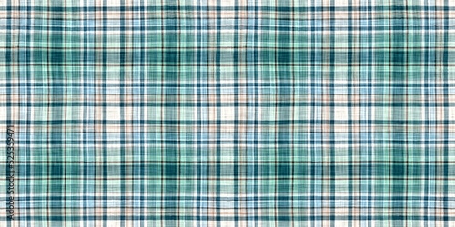 Teal rustic coastal beach house border check fabric tile. Seamless sailor flannel edging trim textile. Gingham rustic banner ribbon endless tape.