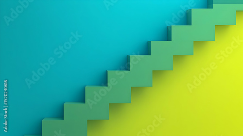 Teal Steps Leading Upward Against Vivid Yellow Background