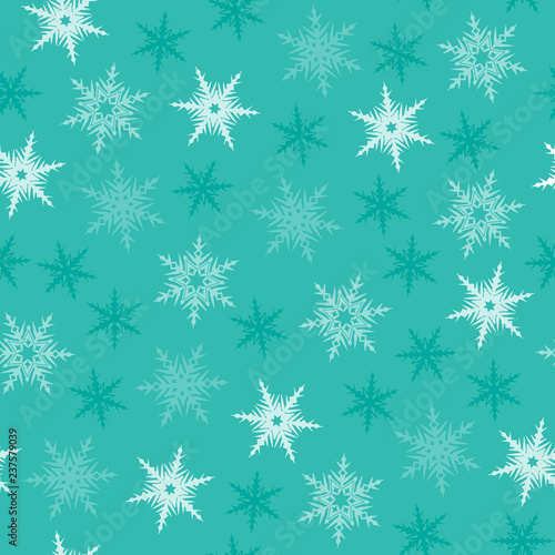 Teal/aqua and white seamless snowflake pattern - design element.