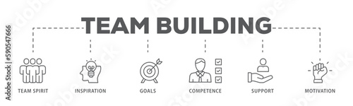 Team building building banner web icon vector illustration concept with icon of team spirit, inspiration, goals, competence, support, and motivation