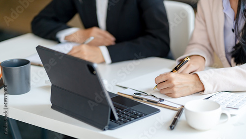 Team business people planning strategy brainstorming and analysis marketing and using laptop. Business meeting concept.