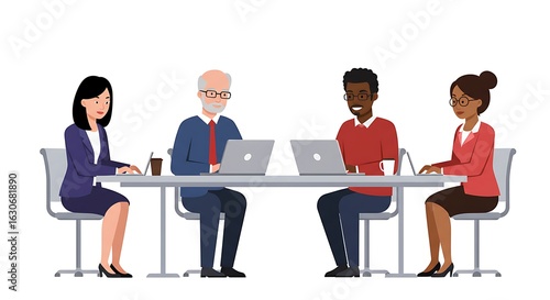 Team Collaboration in a Modern Workplace – vector ilustration on a white background