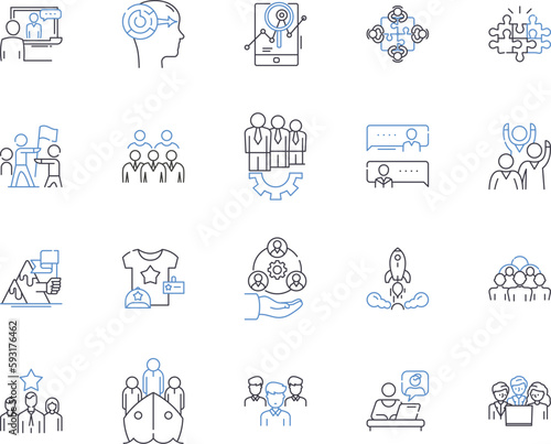 Team collaboration outline icons collection. Cooperation, Collaboration, Networking, Unify, Co-Ordinate, Syndication, Interact vector and illustration concept set. Unionize, Aggregate, Cooperative