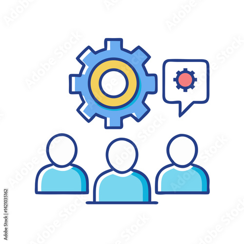 Team Communication with Gear Icon Representing Collaboration and Technical Coordination