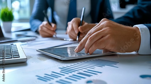 Team Discussion on Financial Data with Tablet