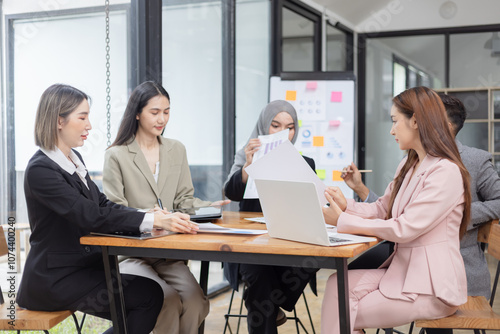 Team of Asian business people and working together in office, Startup projects and business presentation at meeting room.