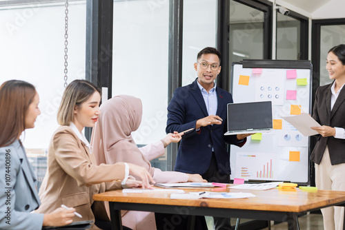 Team of Asian business people and working together in office, Startup projects and business presentation at meeting room.