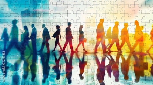 Team of Diverse Business Professionals Strategizing with Puzzle Pieces