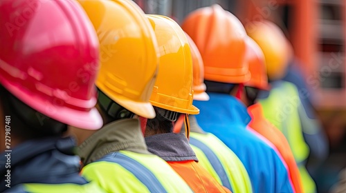 Team of engineers, helmets in hand, standing in formation on-site. Dynamic banner design capturing professionalism, teamwork, and construction excellence.