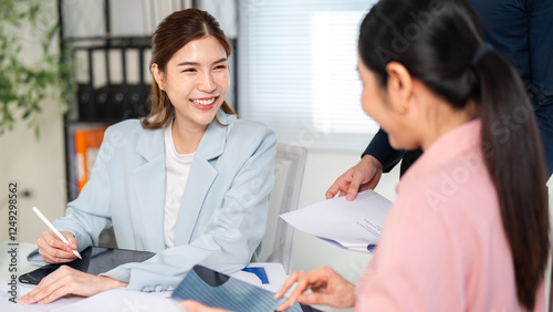 Team of professionals discussing over business project, Corporate business team and manager planning strategy. Discussing ideas. Business Consulting meeting casual brainstorming new project finance