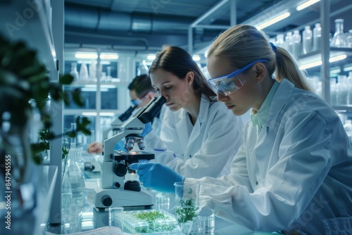 team of scientists in a innovative modern laboratory wearing lab white coats doing medical research