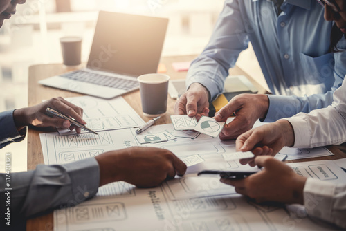 Team of website designers who are creative and planning to develop an application on the mobile phone in the office.