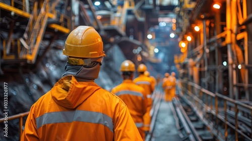 Team of Workers Conducting Safety Checks in a Dimly Lit Ore Processing Facility