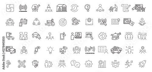 Teamwork and business line icons collection. Big UI icon set. Thin outline icons pack. Vector illustration