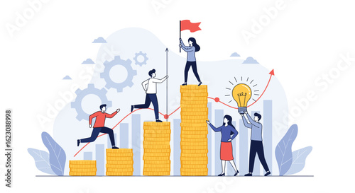 Teamwork and collaboration leading to business success and achievement through strategic growth and innovation