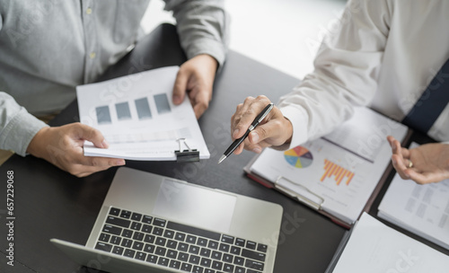 Teamwork brainstorming Creative idea Business project. Business People meeting taking notes while discussing to share idea