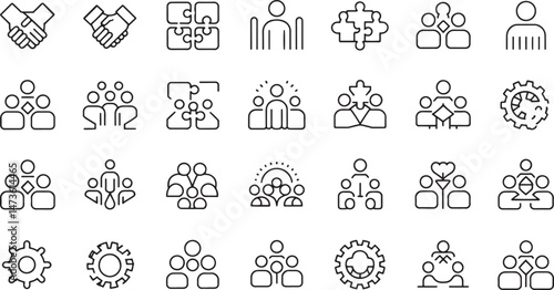 Teamwork Icon Representing Shared Goals with Black Silhouettes on White Background
