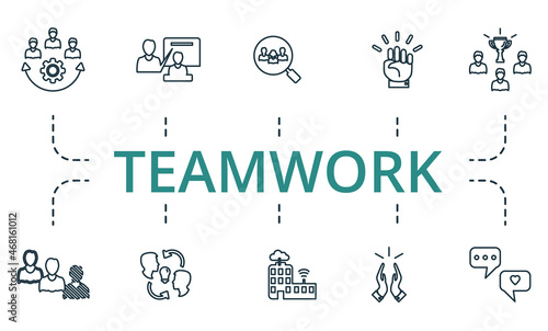 Teamwork icon set. Collection of simple elements such as the focus group, team building, career, succes, profit, teamwork, solution.